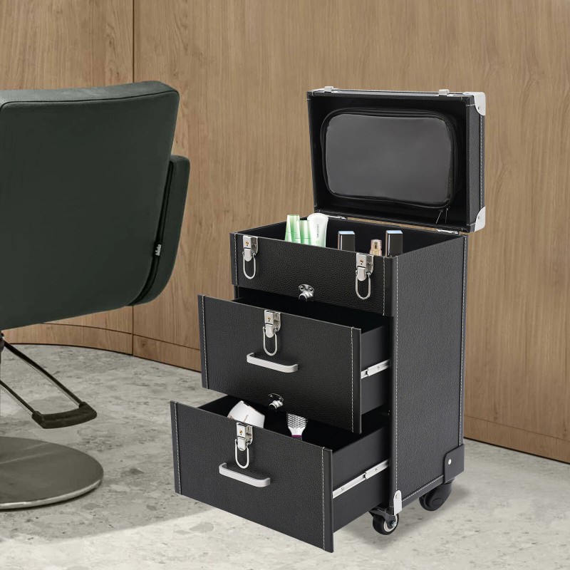 A good makeup case is essential for makeup artists. The rolling makeup case is made of high-quality materials, sturdy and durable. The large capacity design allows you to partition and store different cosmetics, hair tools, and more. With the minimalist style, universal wheels, retractable pull rod, and comfortable handles, it makes your make-up work more convenient!