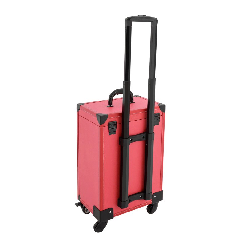 If you are troubled by storing all your hairdressing tools in order and finding them easily, our makeup train case can be of great help to you. Featuring high durability, attractive appearance, large capacity, universal wheels, humanized handles, a telescopic rod, and more, this product is easy to carry outside while keeping practical and beautiful. It is an ideal choice for young manicurists, make-up artists, and hairdressers/cosmetics lovers to store various cosmetics.