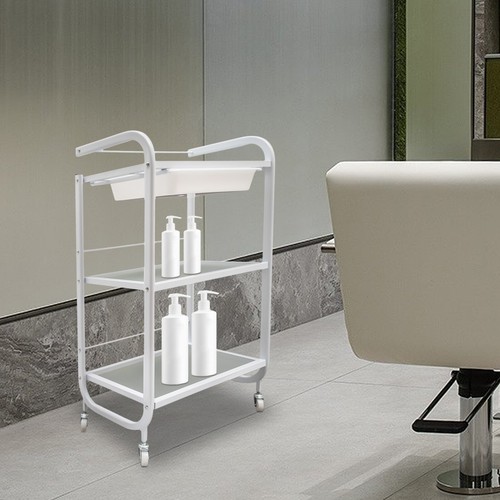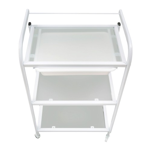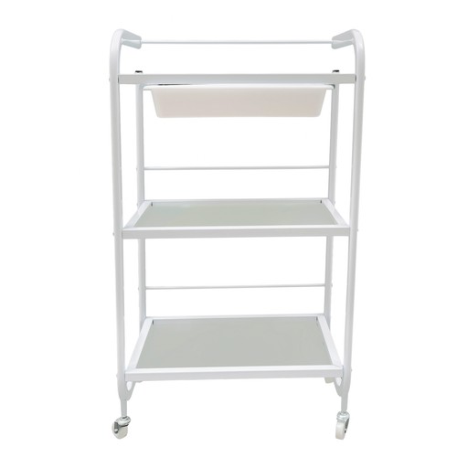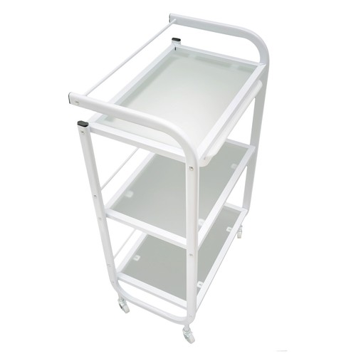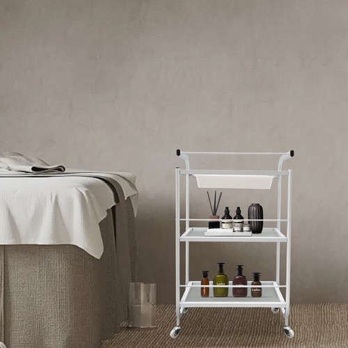Stylish and Versatile: the White and Glossy Shelving Design in This Storage Trolley Looks Stylish and Blends Well with a Variety of Home Decorations.
