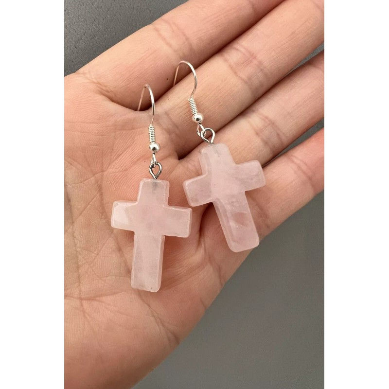 Unbranded Rose Quartz Crystal Cross Earrings, Elegant And Unique, Cross Earrings