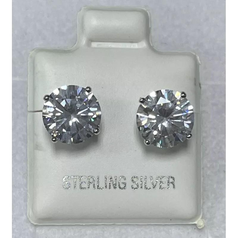 Unbranded Round Cut Stud Earrings Basket Setting Pushback 8MM Sterling Silver 925 4 Prong