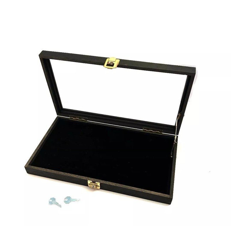 Unbranded Rustic Black BP Key Lock & Lid Support with Pad Display Case Medals Pins Jewelry