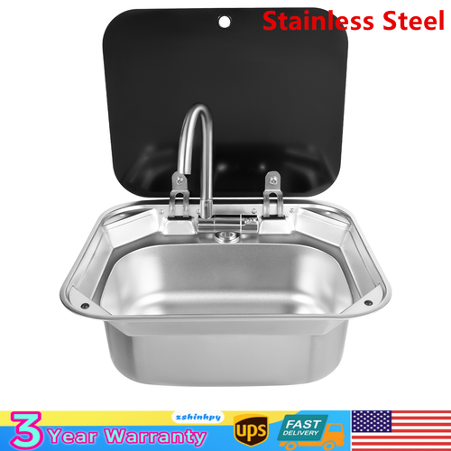 RV Kitchen Sink Unit Caravan Camper Hand Wash Basin w/ Faucet Stainless Steel