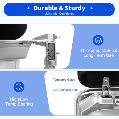 Durable & Sturdy: The tempered glass cover and 304 stainless steel sink are corrosion-resistant and rust-proof, resistant to high and low temperatures, and can be used with confidence for a long time.