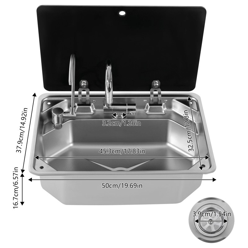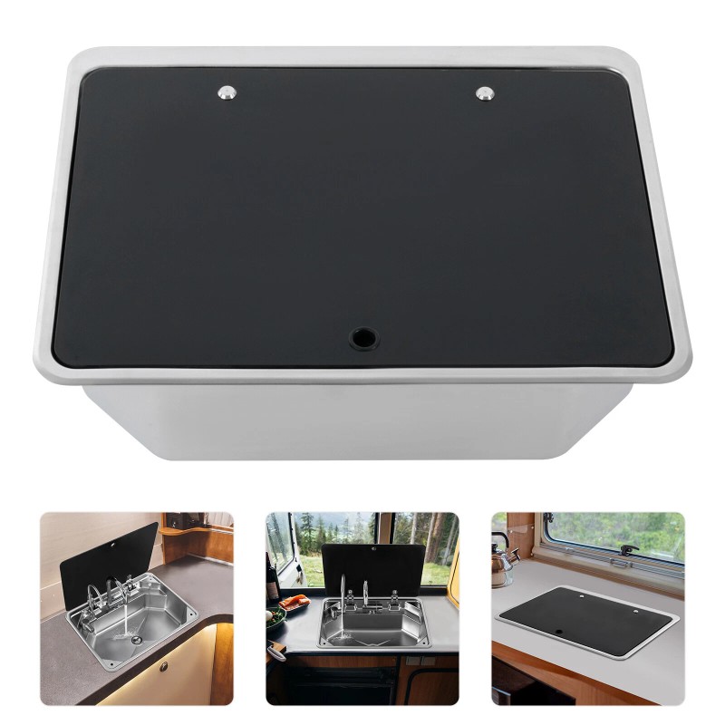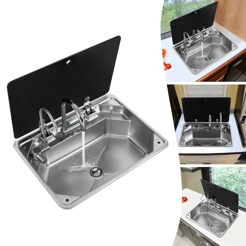 Unbranded RV Sink Kitchen Sink with Hot&Cold Faucet and Tempered Glass Lid Stainless Steel
