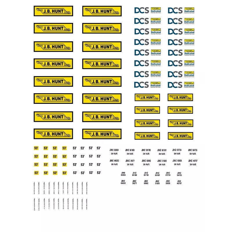 Unbranded S Scale ( 1/64th ) Truck / Trailer Decals. "JB Hunt DCS "