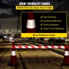 Each cone is equipped with a reflective white collar that enhances visibility in low-light conditions. The reflective strips catch and reflect light from headlights, flashlights, or other sources, making them highly effective for nighttime use.
