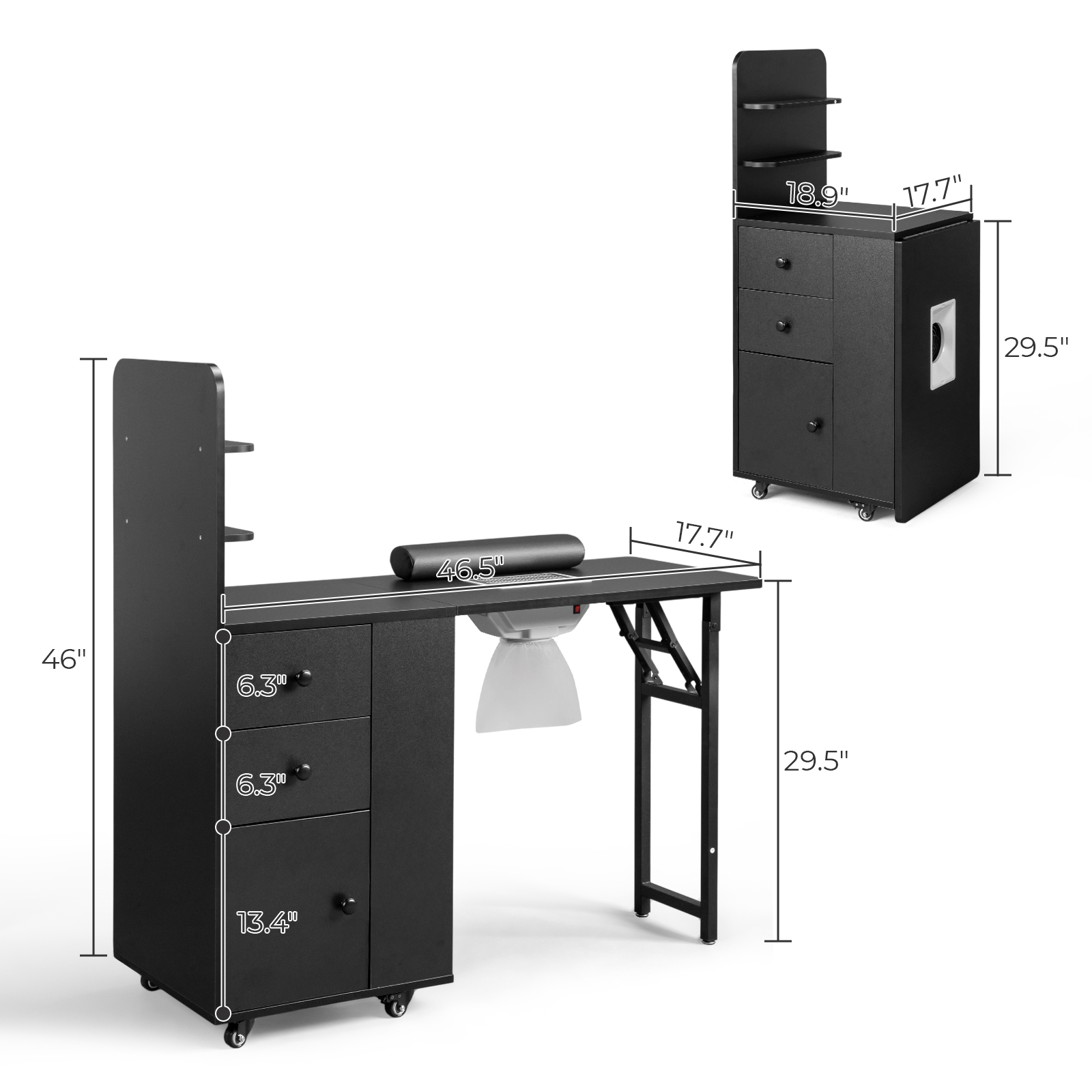 Salon Mobile Folding Manicure Table with Electric Dust Collector, Drawers Black