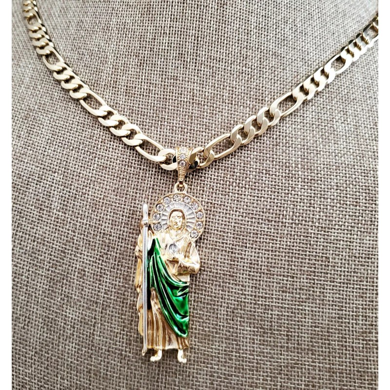 Unbranded San judas Jude protector necklace cadena figaro chain Pendant 14k gold plated