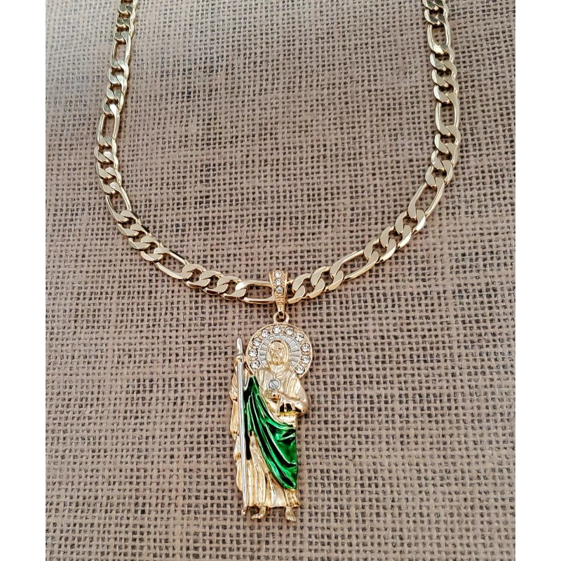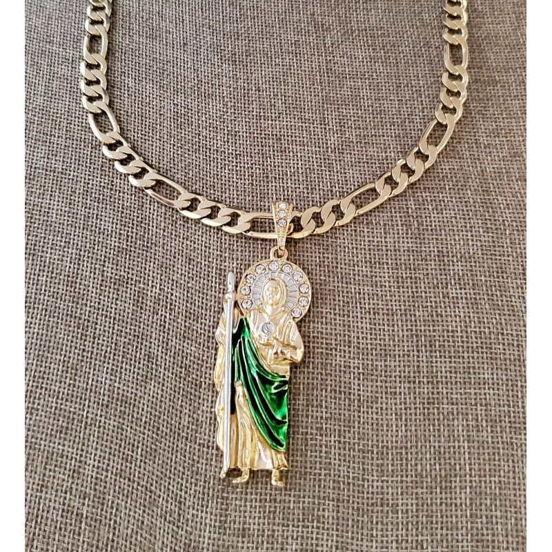 THIS IS A ONE figaro chain 14k Gold plated and saint Jude pendant with 14k gold plated finish.