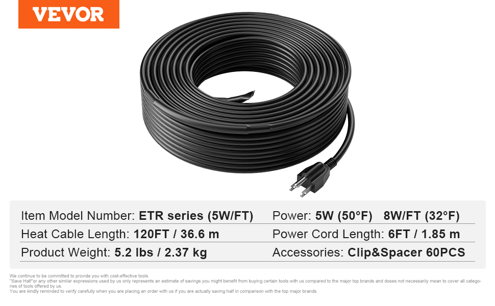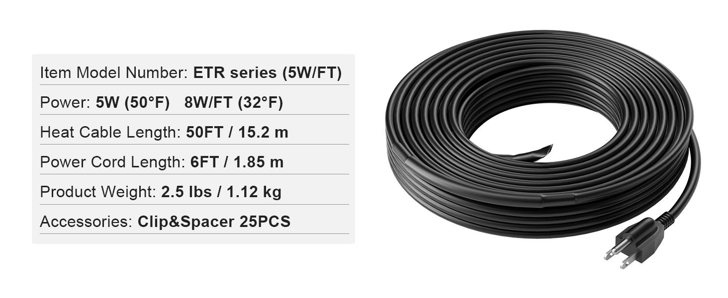 - Type: Self-Regulating Pipe Heating Cable 120FT