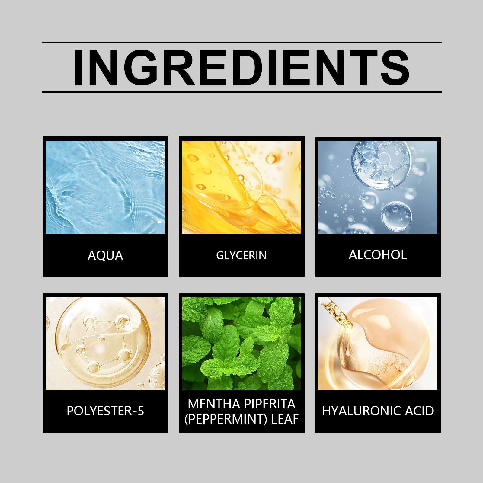 Our long-lasting sprays contain mint leaves and hyaluronic acid. It ensures makeup stays on throughout the day. The way to use it is simple: gently shake the bottle before use. Spray the spray evenly on your face at a distance of 20 to 30 cm and wait for absorption. It can also easily control oil and keep makeup fresh.