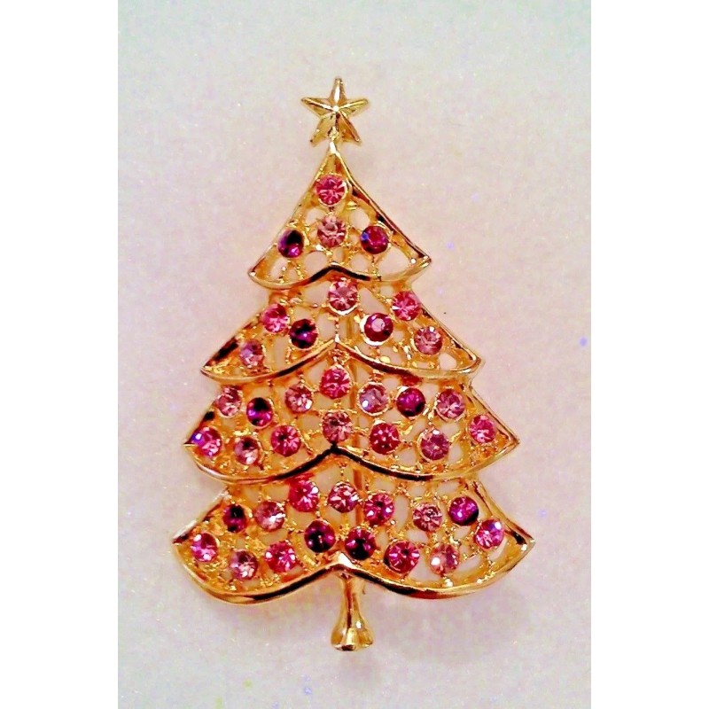 Unbranded Shades of Pink Christmas Tree Brooch - Made in Czech Bohemia- Jewelled