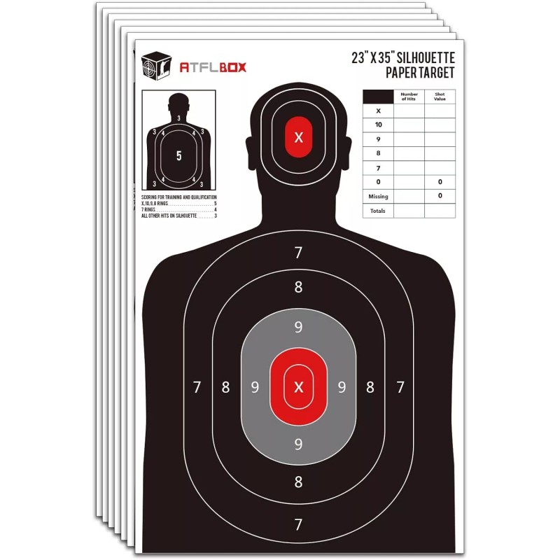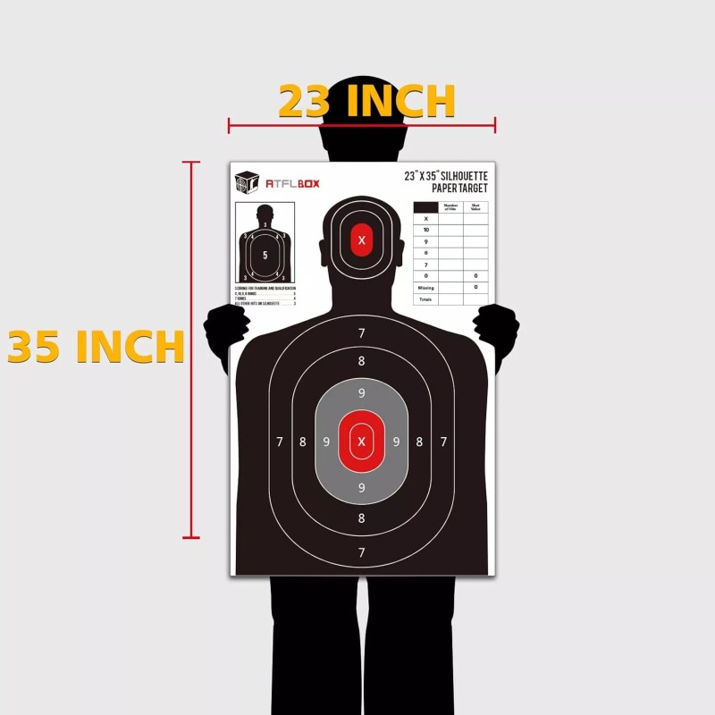 • FUNCTIONAL DESIGN: There are 10 paper targets featuring detailed silhouettes of people in both the head and torso shooting zones to improve your shooting skills. Designed to improve accuracy and skill at all levels of shooting, these targets provide challenge and growth for beginners and experienced shooters alike.