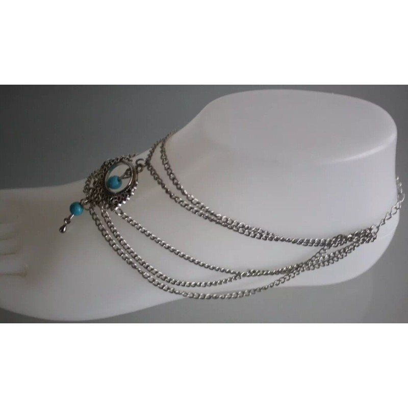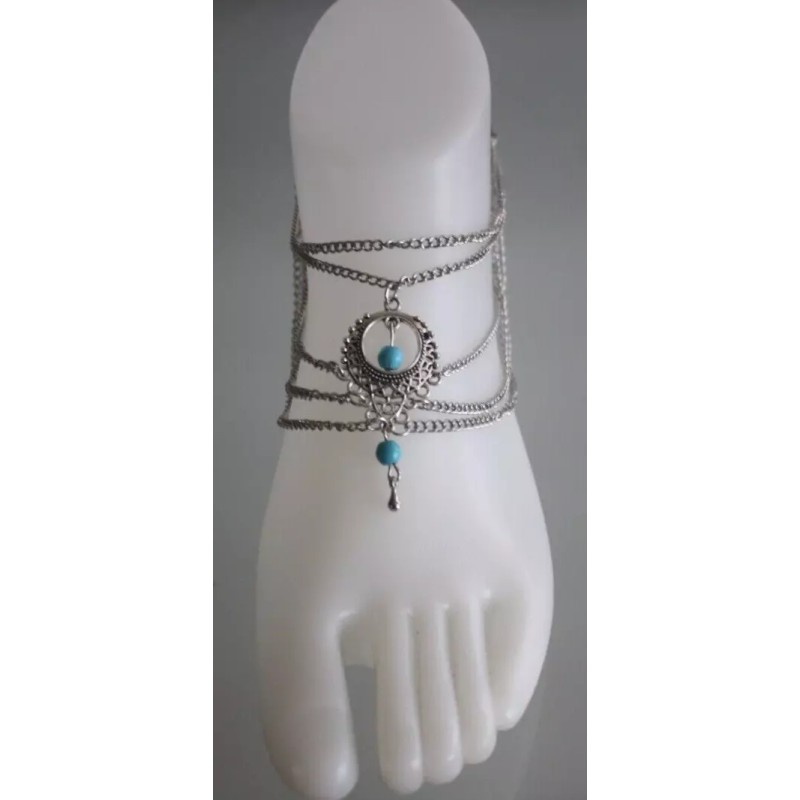 Unbranded Silver Antique Look Boho Ankle Bracelet Turquoise Beads Layered Chains NWT