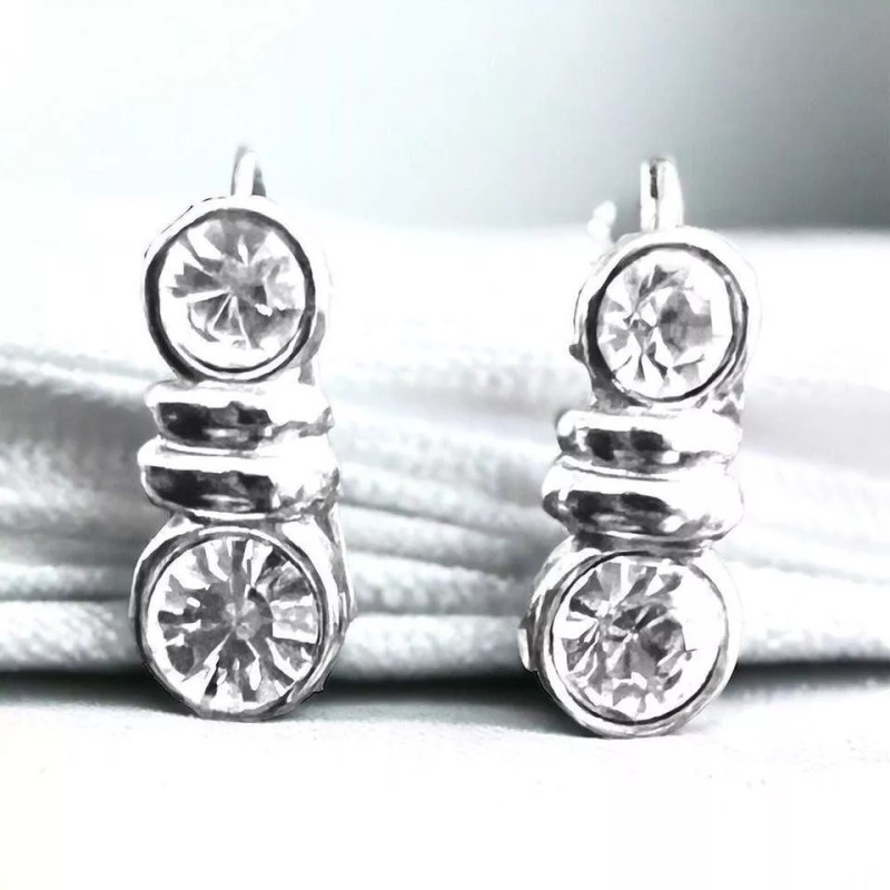 Unbranded Silver & Crystal 1" Earrings Hypoallergenic Made in the USA