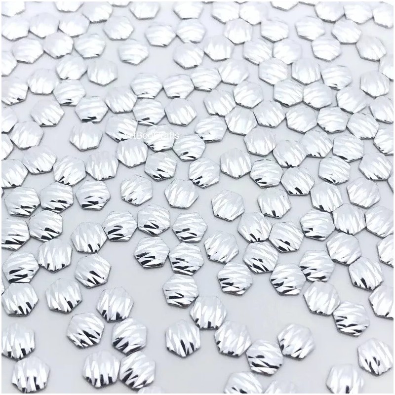 Unbranded Silver Hexagon Shaped Hotfix Check Nailhead / Available Size 4x4mm / 100pc