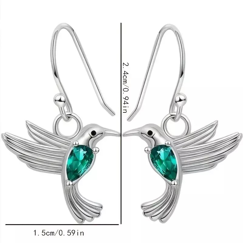 Unbranded Silvertone Hummingbird Red Zircon Dangle Hook Earrings - New