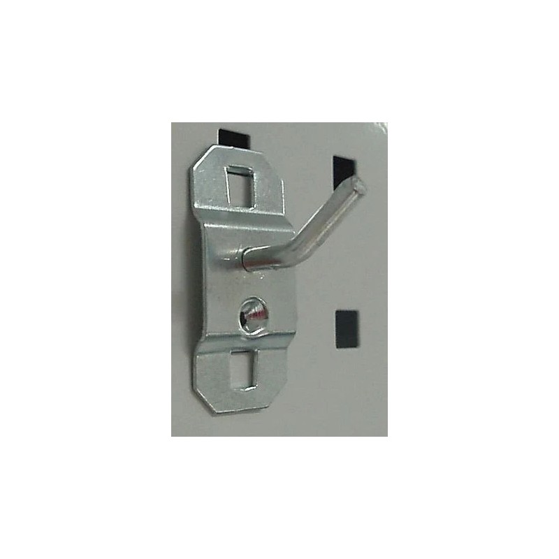 Price For: Each Construction: Welded Material: Steel Hole Size: 3/8" Hole Spacing: 1-1/2" Hole Shape: Square Locking System: Yes Item: Single Rod Pegboard Hook Type: Locking Style Rod Thickness: 3/16" Bend Angle: 30 Degrees Bend Height: 3/4" Projection: 1" Finish: Bright Zinc Country of Origin (subject to change): China