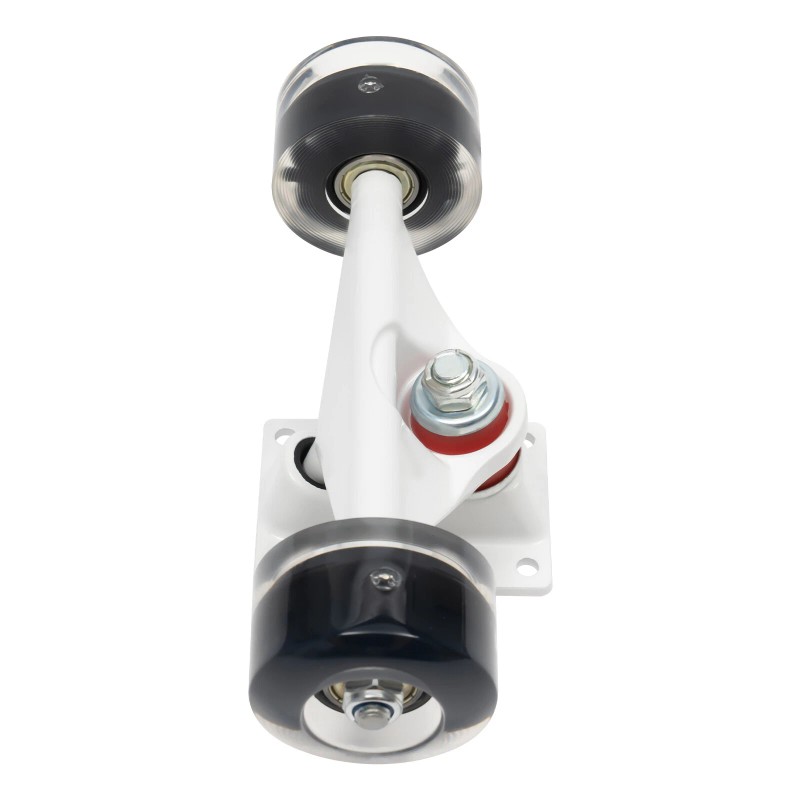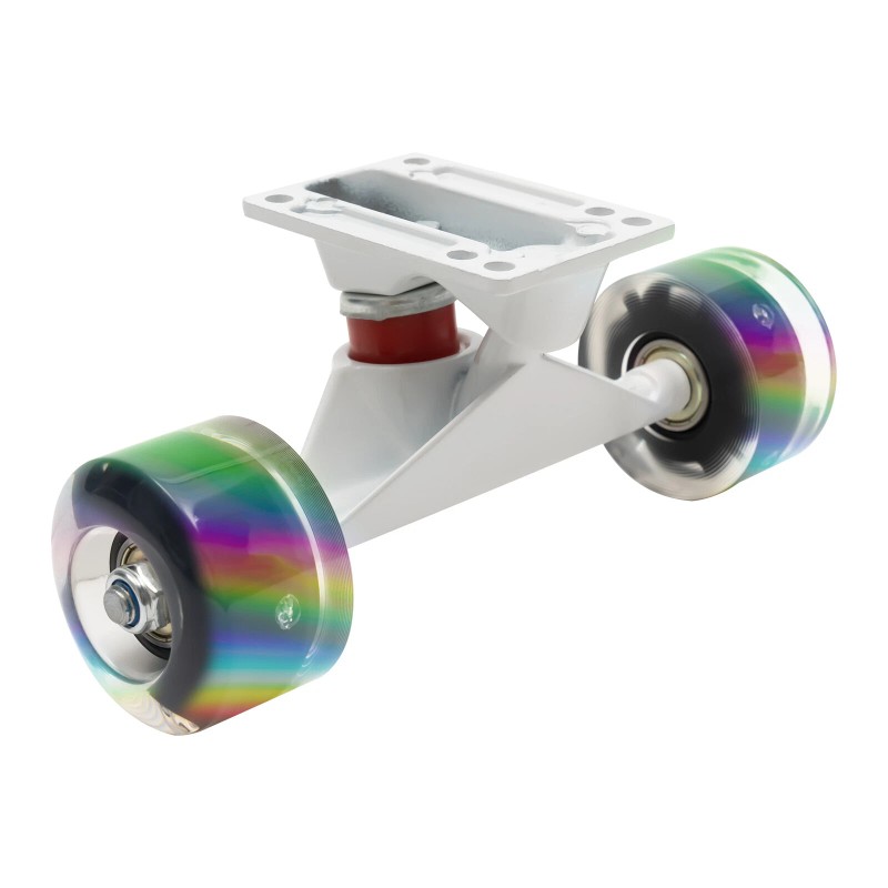 This skateboard truck kit is made of premium aluminum alloy, PU, and metal, making it sturdy and durable. Its flash wheels with gorgeous light during skateboarding will make you the center of attention instantly. 85A hardness makes wheels roll smoothly on most surfaces, which makes it a great choice for skateboarding and showing off your skills on the street. It's also very easy to install, both beginners and long-time skaters can use it to DIY a new skateboard or upgrade your favorite skateboard.
