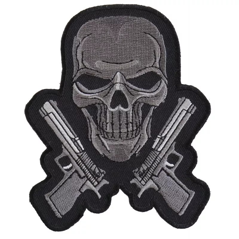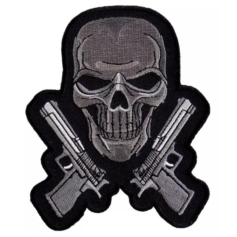 Unbranded Skull and Pistols Embroidered Sew On Iron On Patch Guns 9mm 3.1/2" x 4"