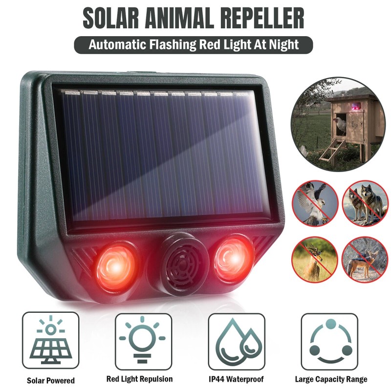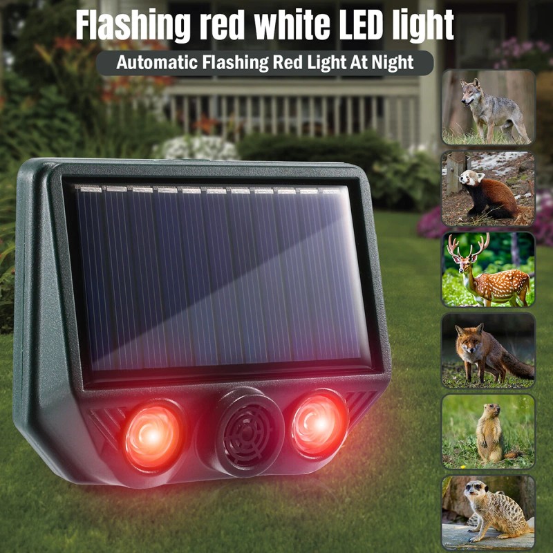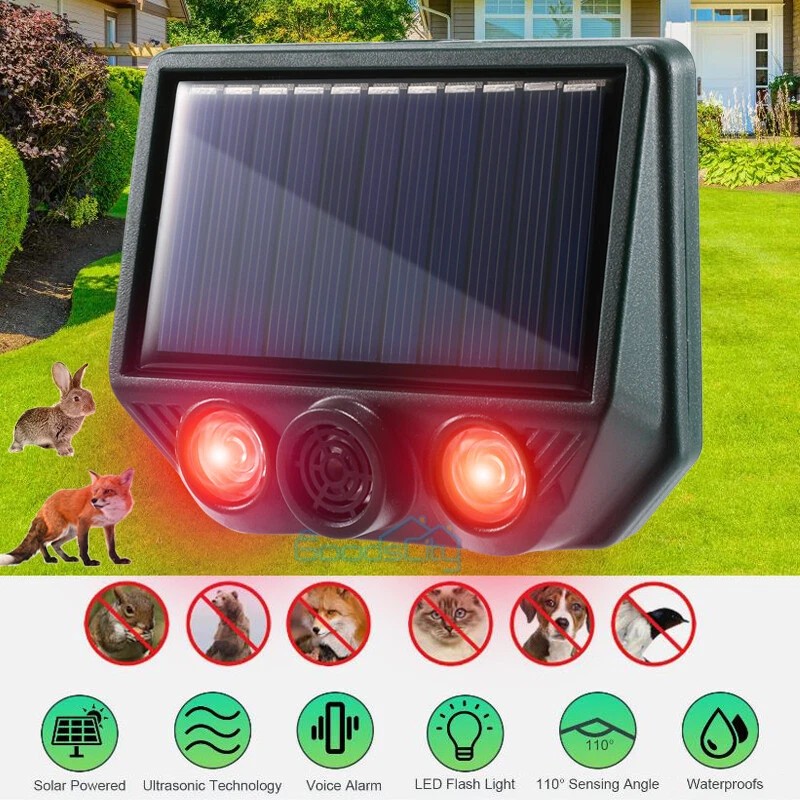 Unbranded Skunk Repellent Ultrasonic Solar Dog Cat Deer Animal Repeller w/ Red Flashlight