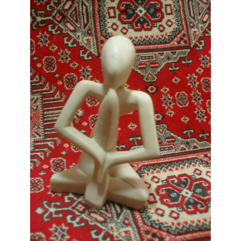 Unbranded Small Yoga Alabaster Figurine Meditation Pose 6.5" Tall Beige