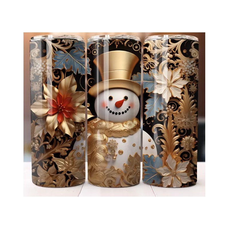 Unbranded Snowman 3D Christmas Gold Cup Tumbler Mug 20 oz Stainless Steel Custom Design