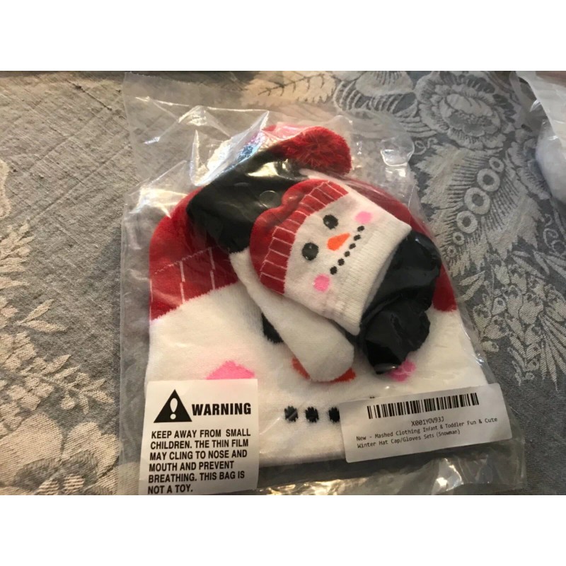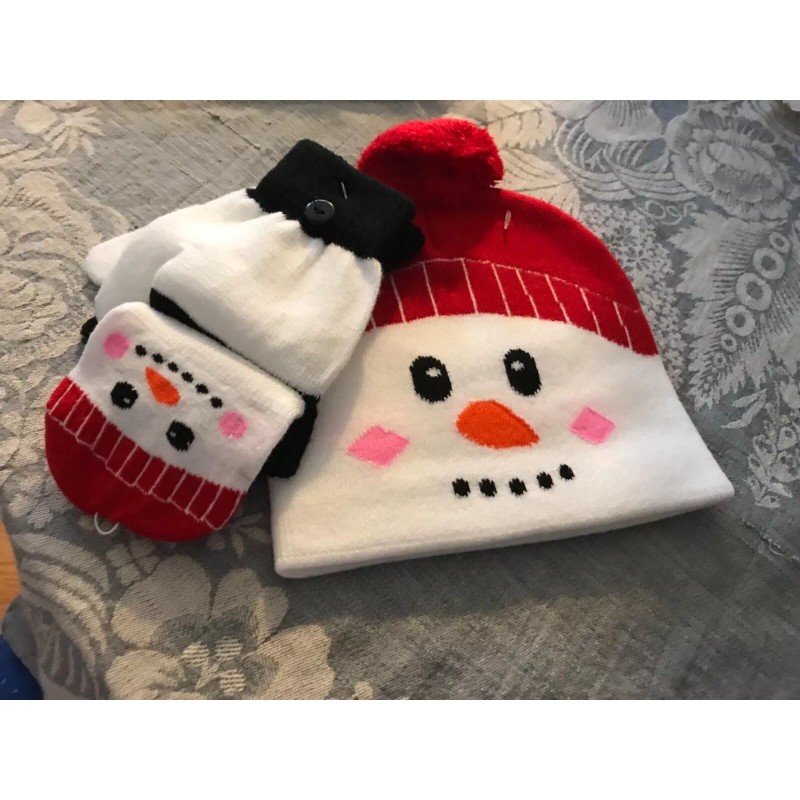 Unbranded Snowman Hat and Gloves Toddler Kid sized Knit gloves convert to mittens soft NIP