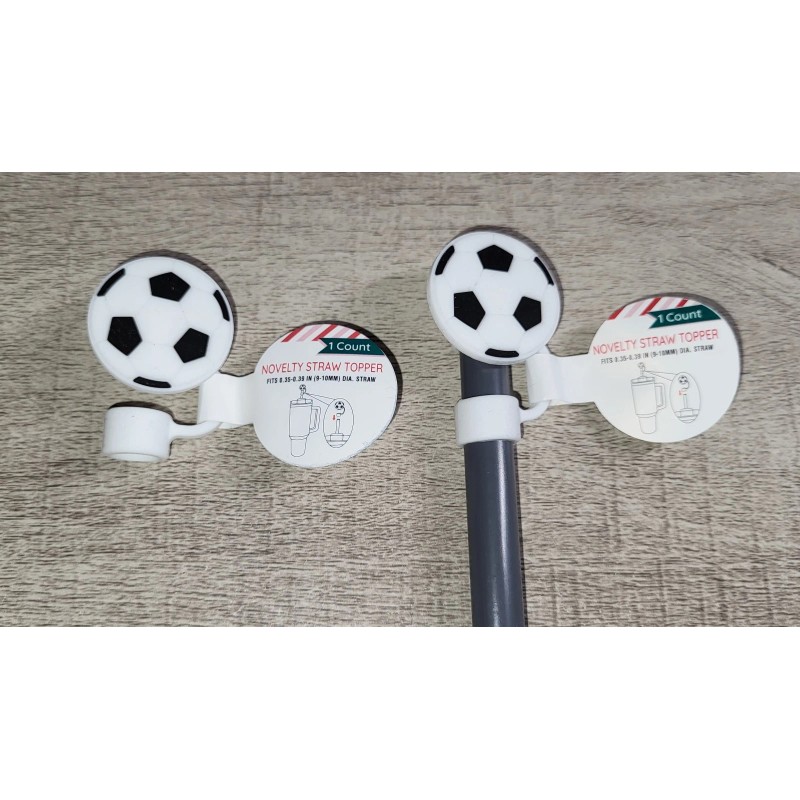Unbranded Soccer Novelty Tumbler Cup Straw Topper Cap Only Set of 2 NWT