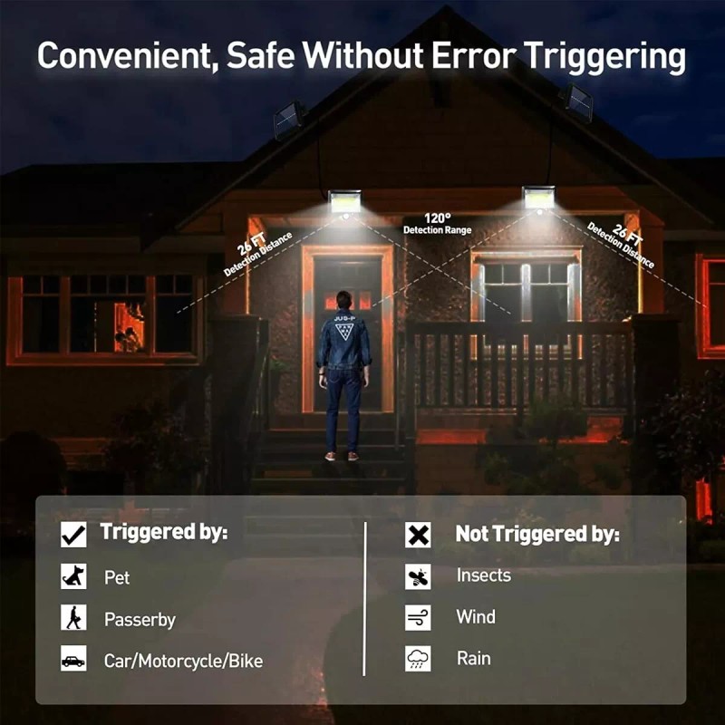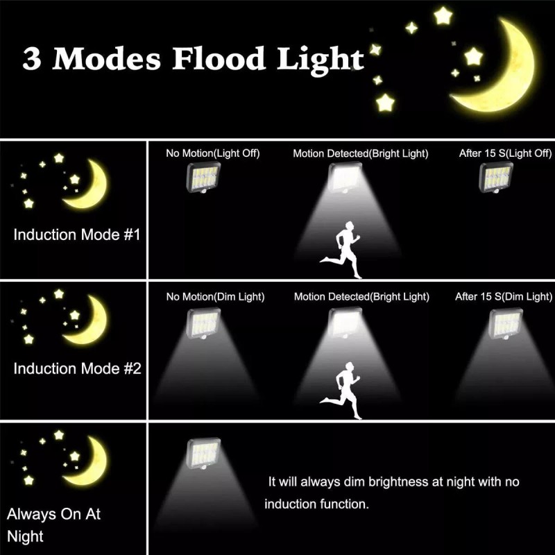 Unbranded Solar Light Motion Sensor 3 Modes Flood Lamp For Outdoor Street Wall Yard Garden