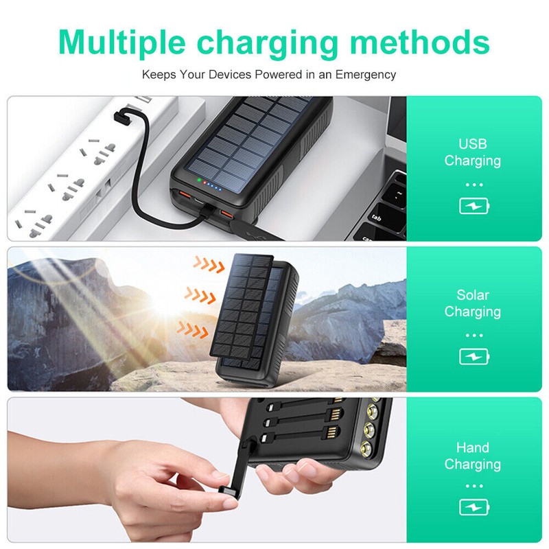 Unbranded Solar Power Bank 61200mAh Hand Crank Generator Portable External Battery Charger