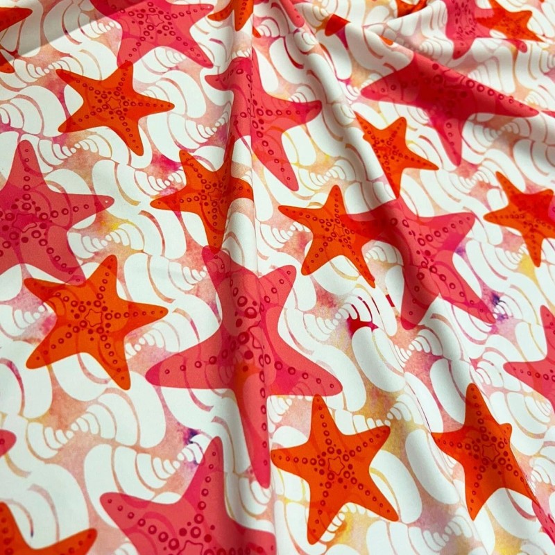 Unbranded Spandex Fabric Coral Starfish Print 4-Way Stretch 60" wide Swimsuit By the Yard