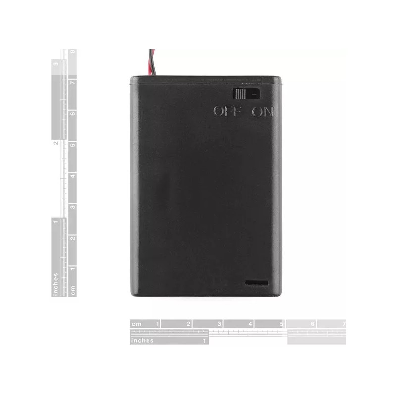 Description: This 3xAA battery holder puts a nice finishing touch on your battery powered project. This holder features a removable, sliding cover, which is secured with a small phillips head screw. Another bonus is the ON/OFF switch which can be used to control power to your project.