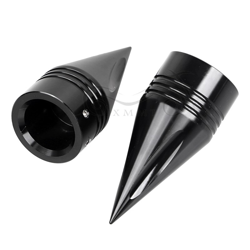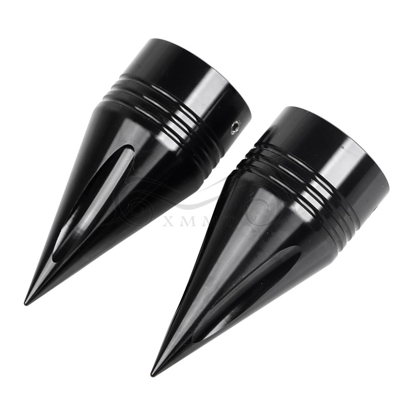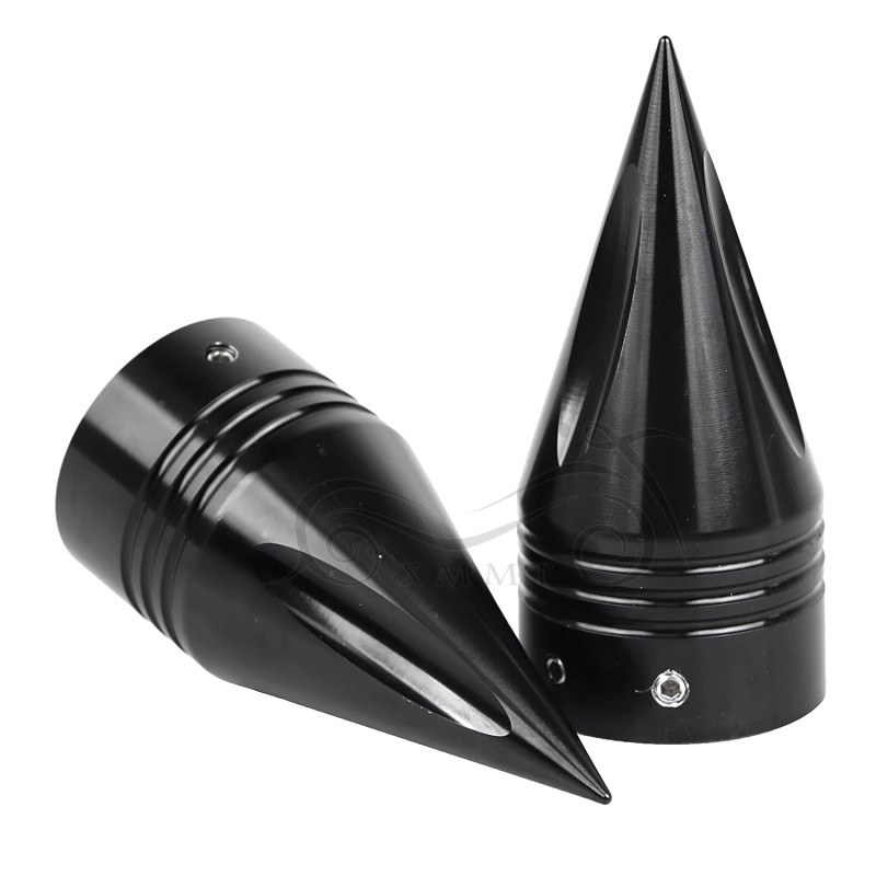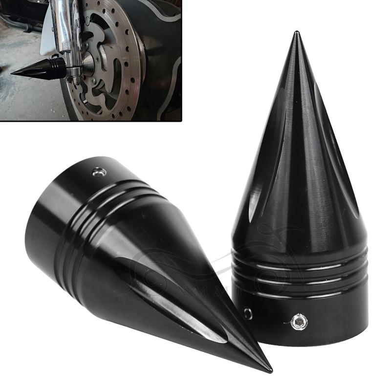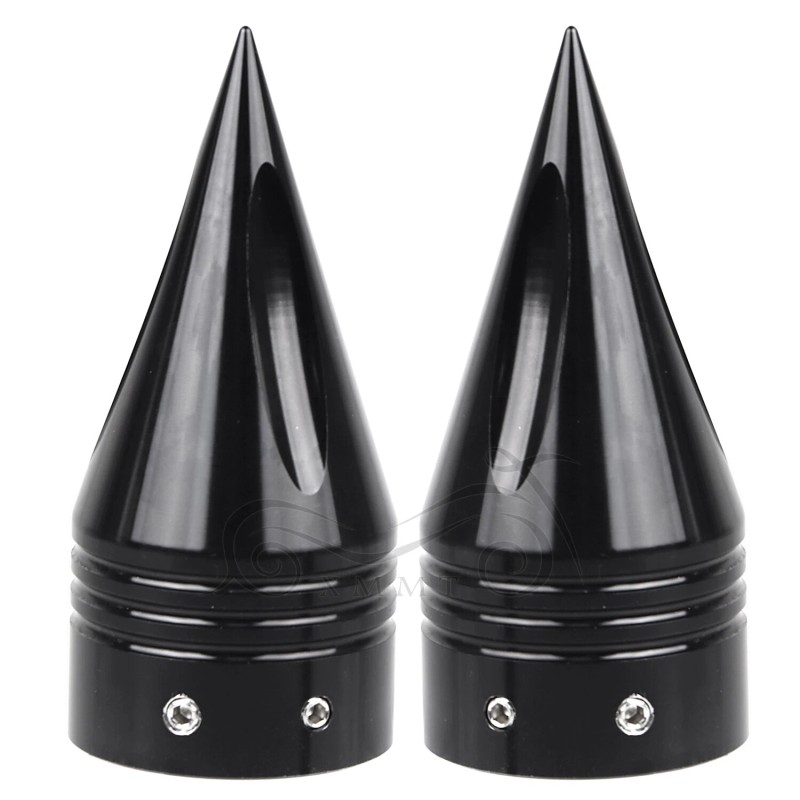 Unbranded Spike Black Front Axle Cap Nut Covers For Harley Softail Road Street Glide FLHX