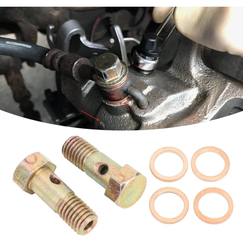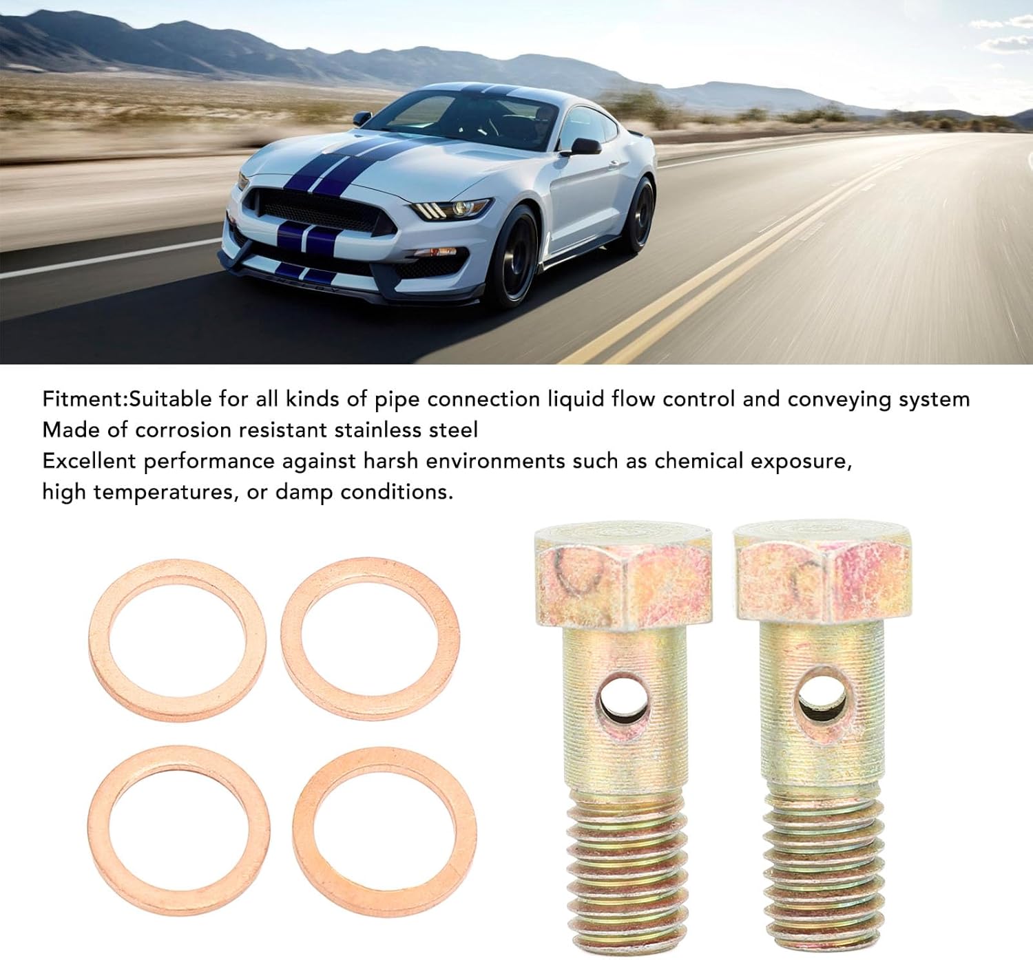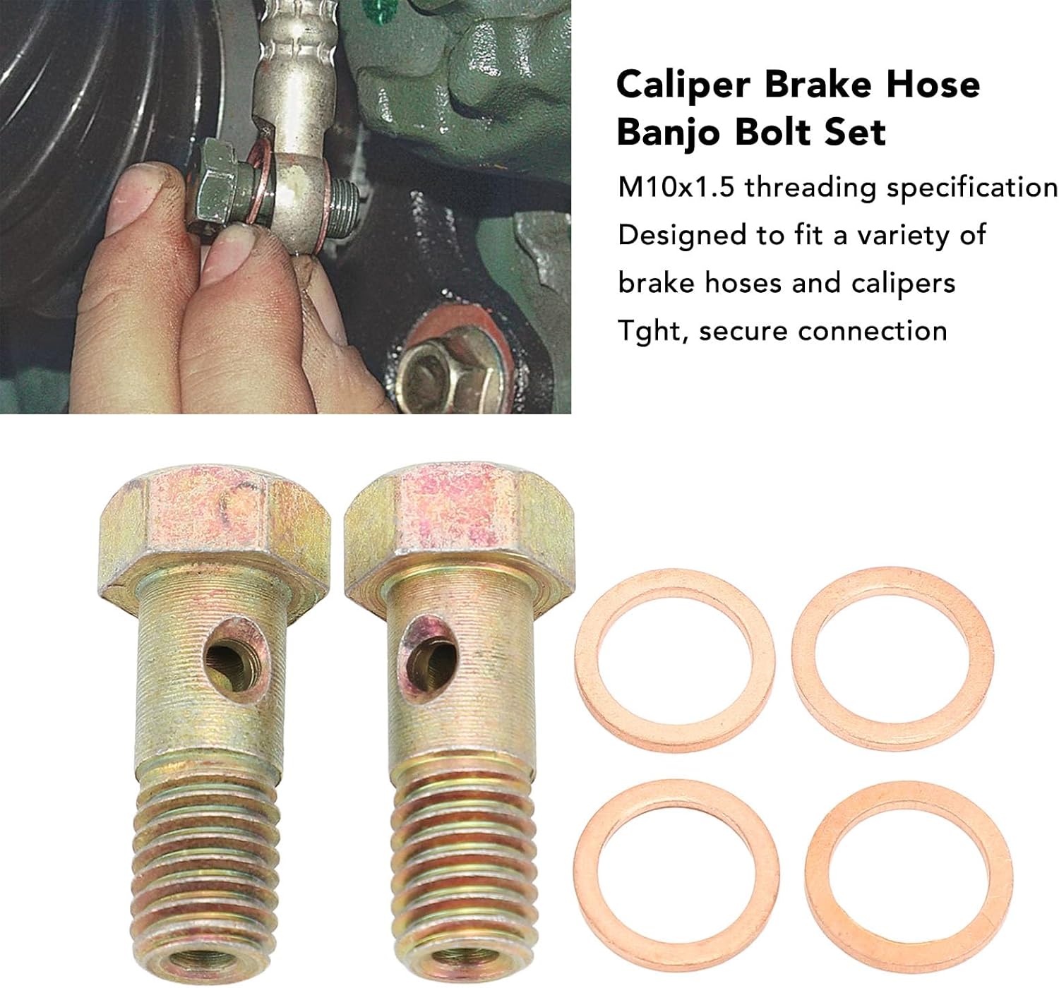 Pair of M10 x 1.5 Caliper Brake Hose Banjo Bolt Set Stainless Steel Brake Line Hose Bolts with Crush Washers