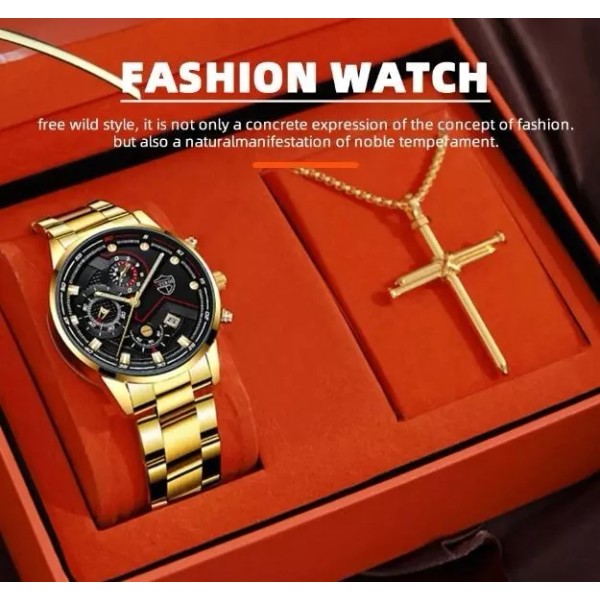 Unbranded Stainless Steel Luxury Quartz Wristwatch Calendar with necklace
