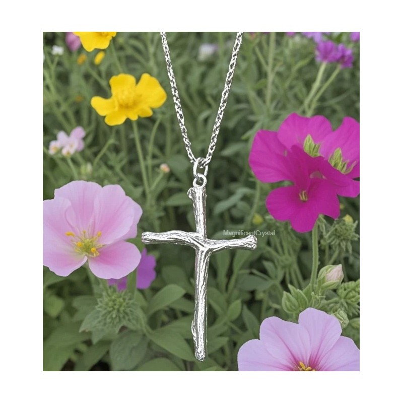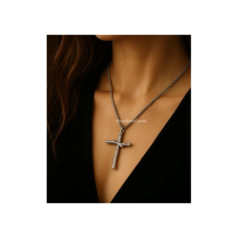 Unbranded Stainless Steel Tree Branch Cross Pendant Nature-Inspire