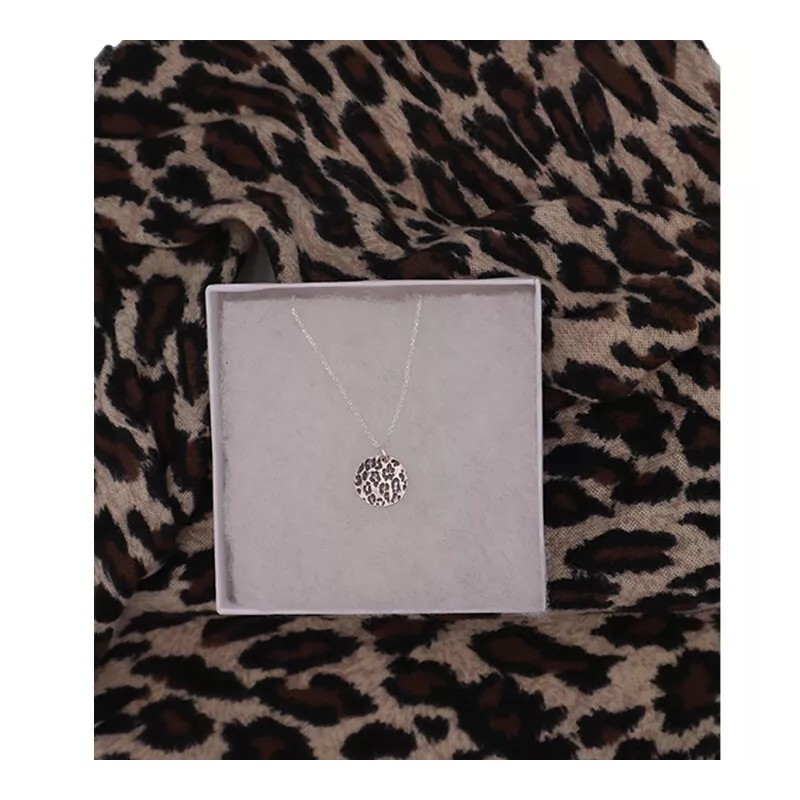 Unbranded Sterling Silver Leopard print etched Circle Pendant with adjustable necklace
