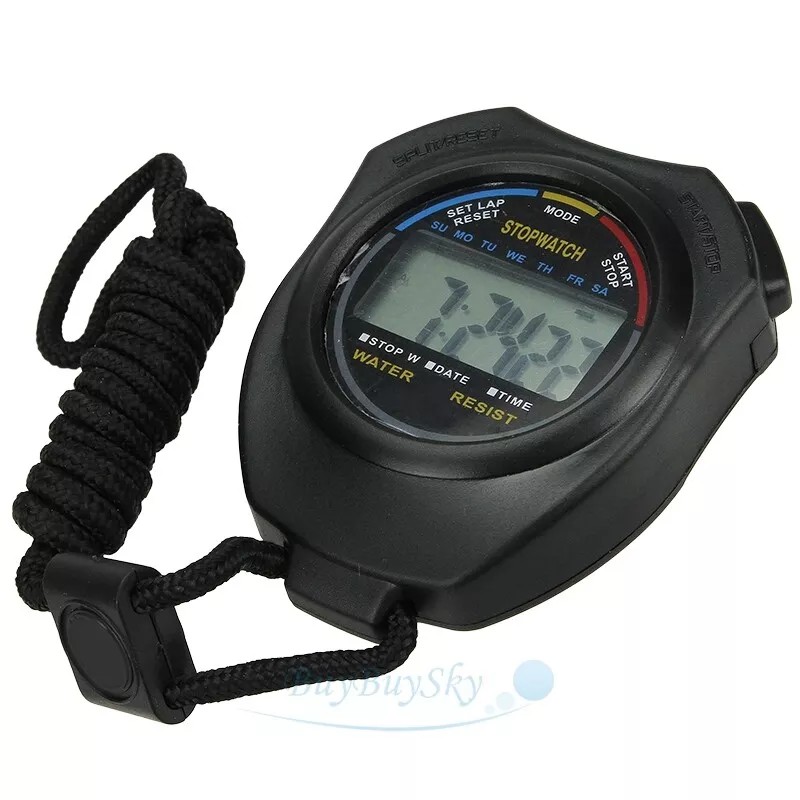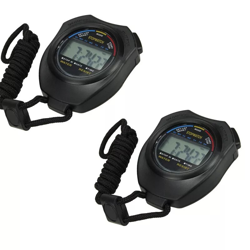 Unbranded Stopwatch Digital LCD Waterproof Sports Counter Chronograph Timer Odometer Watch - 2 pcs