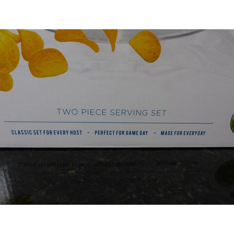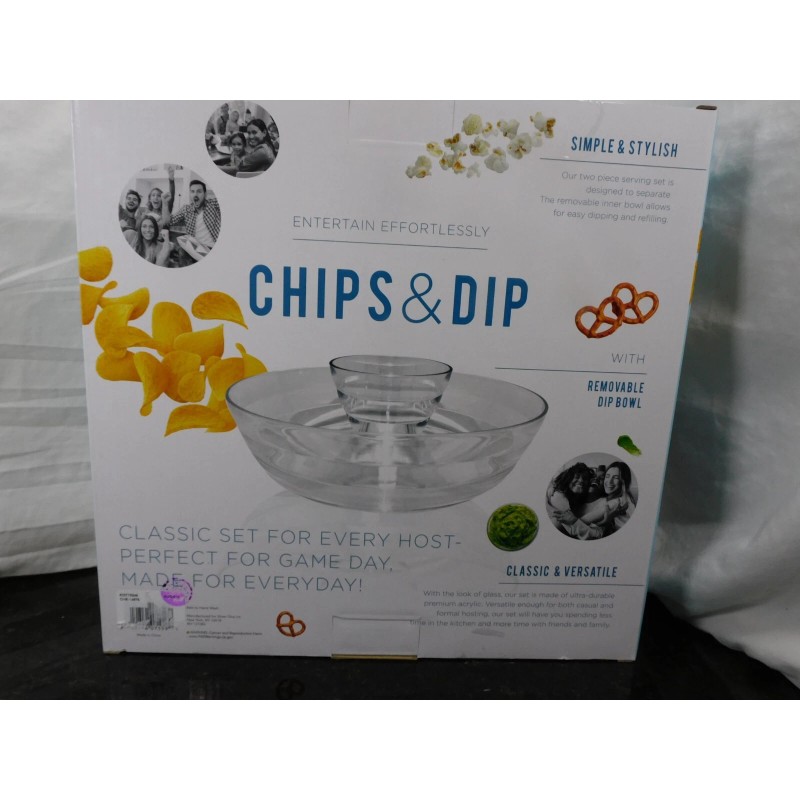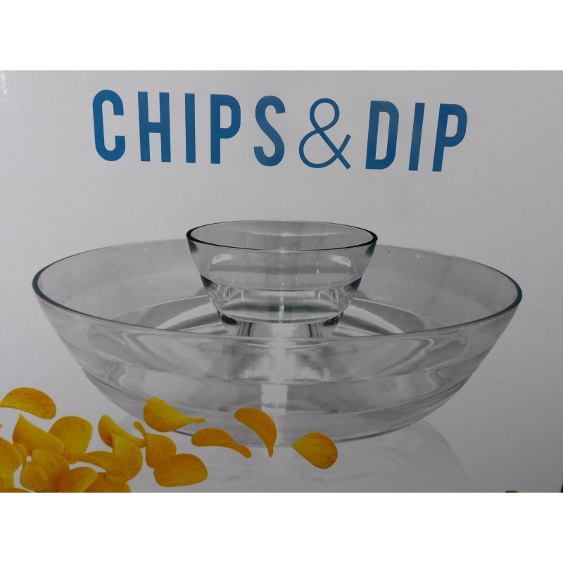 Stylish Chips & Dip Serving Bowl Set Clear glass look Plastic, Removable Center Bowl.