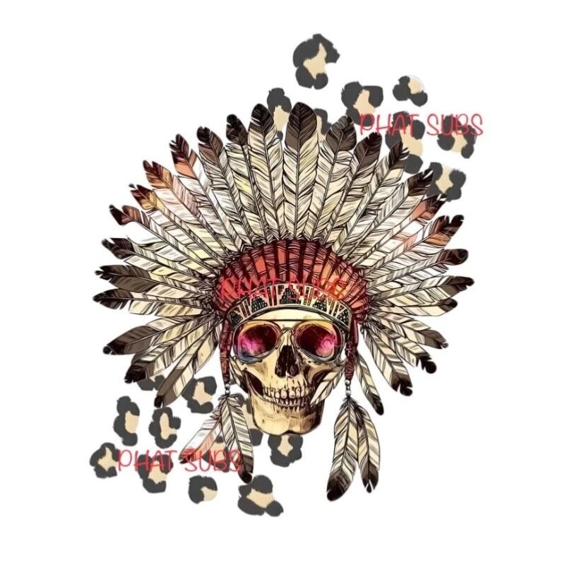 Unbranded Sublimation Print Native American Skull Ready To Press Heat Transfer