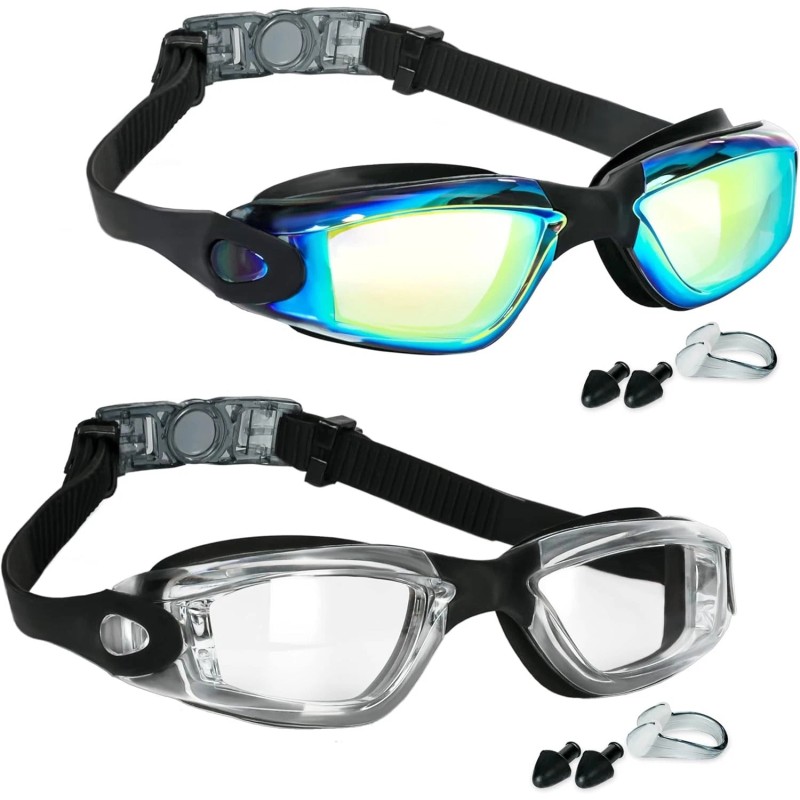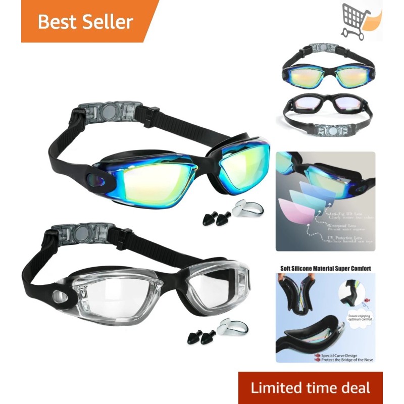 Swim Goggles Silicone 2 Pack Anti Fog No Leaking Eye Protection for Adults