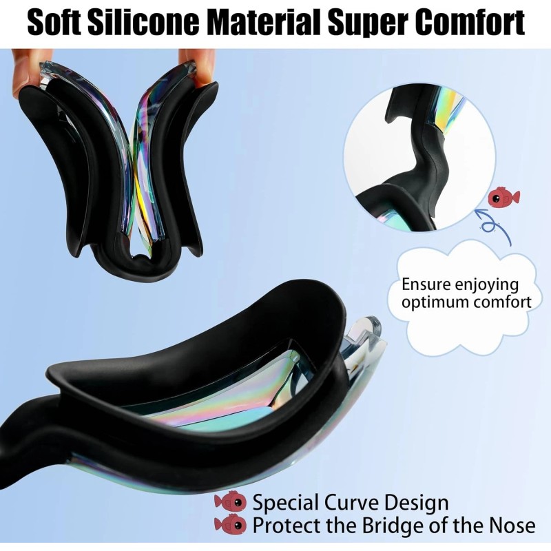 - NO LEAKAGE: Crafted for maximum comfort, our goggles feature high-quality silicone that molds seamlessly to all face shapes, delivering an impeccable seal that keeps water out.