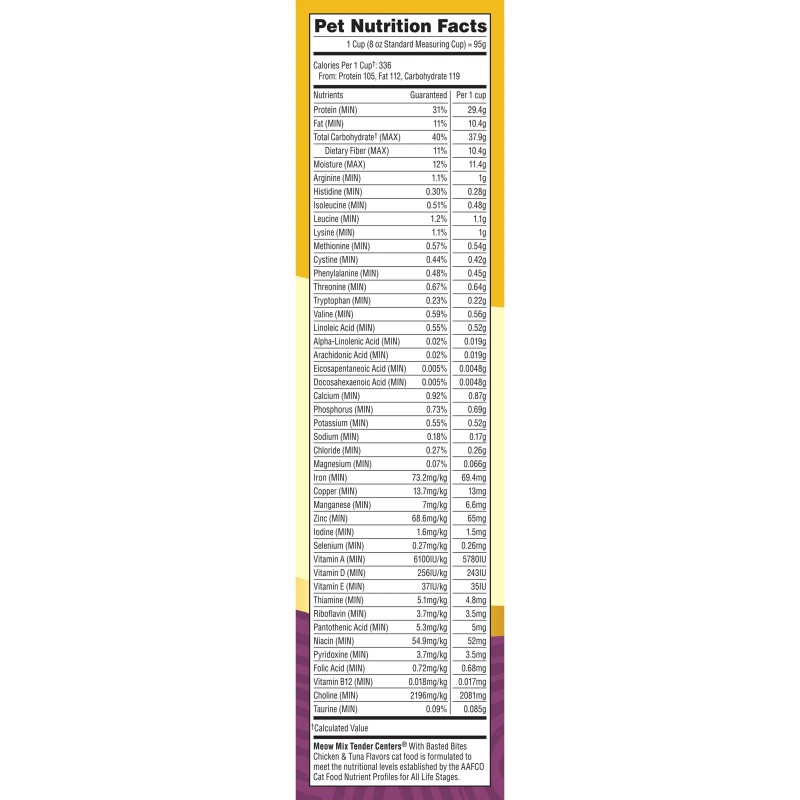 - Contains one (1) 3-pound bag of Meow Mix Tender Centers Dry Cat Food with Basted Bites, now with a new look