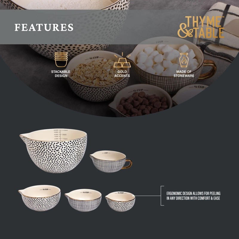 - Thyme & Table, 5-Piece Ceramic Mixing Bowl and Measuring Bowl Set, Dot Pattern