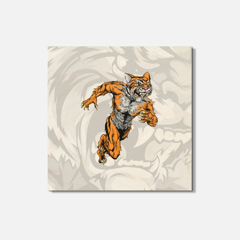 Unbranded Tiger Angry Monster Animal 4'' X 4'' Square Wooden Coaster