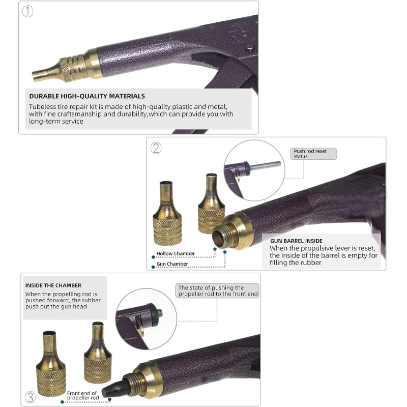 Unbranded Tire Plugger Tubeless Tire Wheel Repair Gun Kit Mushroom Plug Probe Nozzle! Best