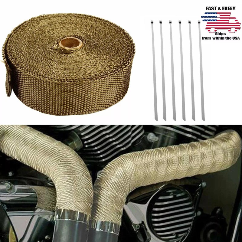 Unbranded Titanium 2" 33FT Exhaust Header Heat Wrap Trap Motorcycle Fiberglass + 6 Ties