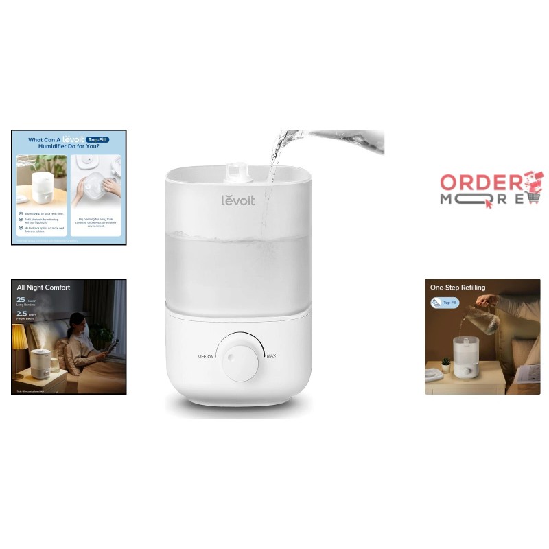 Top Fill Humidifier BPA-Free 2.5L Quiet 25H for Home Baby Nursery Auto Shut-off